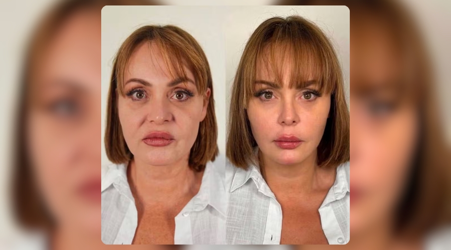 A clínica responsável pelo procedimento mostrou o antes e depois da atriz em uma postagem feita nesta sexta-feira, 14, nas redes sociais.