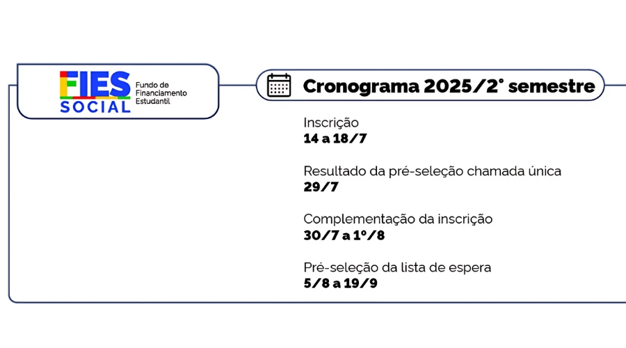 Fies 2025: MEC divulga pré-seleção para o segundo semestre