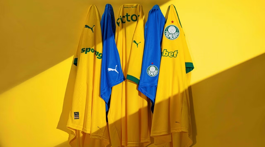 Entre os principais elementos visuais está o embossing frontal, que remete ao “Maior Campeão do Brasil”. O “P” envolto em louros, inspirado em ilustrações antigas, reforça a simbologia e o orgulho de ser Palmeiras. Outro diferencial é a nova gola, inspirada no modelo em “V” usado no jogo, mas reinterpretada com um recorte moderno.